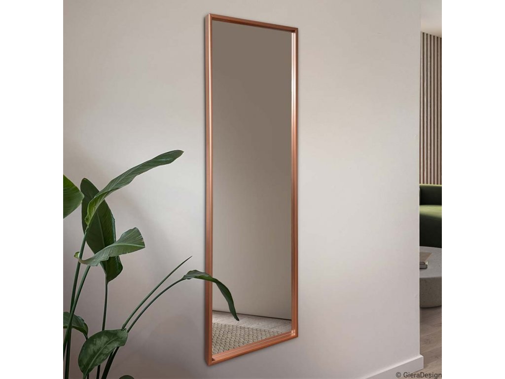 Moderné zrkadlo v medenom ráme s neutrálnym vzhľadom. Vynikajúca voľba pre ľudí, ktorí oceňujú jednoduchosť interiéru. Ideálne sa hodí do obývacej izby, spálne alebo chodby zariadenej v škandinávskom, modernom alebo industriálnom štýle. Je dobre chránené proti vlhkosti, takže ho môžete bez obáv zavesiť aj v kúpeľni.