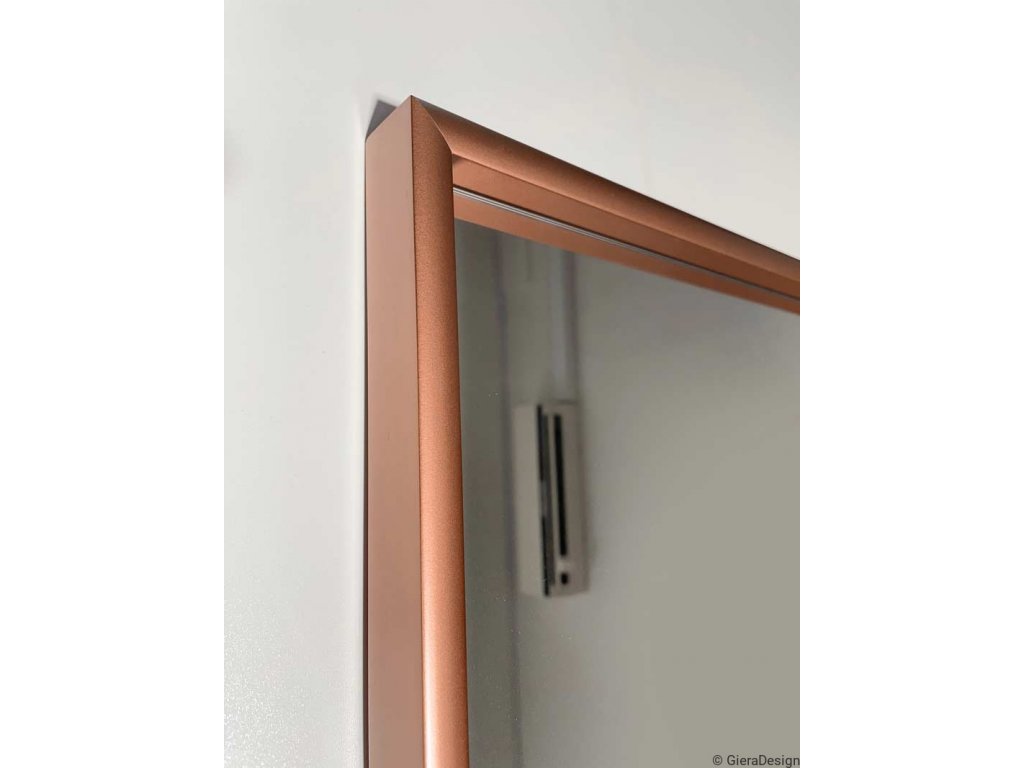 Rám je vyrobený z dreva lakovaného medenou farbou odolným metalickým polyuretánovým lakom. Medený lak, ktorým je rám lakovaný je špeciálne vyvinutý, má vysoký obsah kovových častíc. Vďaka tomu má rám nádherný kovový lesk. Kovová farba sa pri umývaní neodiera a nekoroduje. Hodí sa k väčšine medených batérií, svietidiel alebo iným doplnkom. Je v ňom vložené zrkadlo s vysokým leskom.